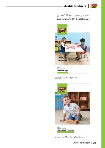 Arabic Products ىرــخلاا 2019 تاـــجولاتك نـع لاـسا Ask for more 2019 catalogues Educational Wooden Toys Montessori Materials & Furniture www.edu-fun.com 24