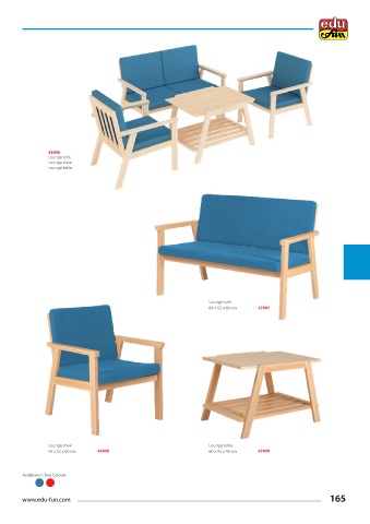 43906 Lounge sofa Lounge chair Lounge table Lounge sofa 89 x 52 x 60 cm 43907 Lounge chair Lounge table 49 x 52 x 60 cm 43908 60 x 45 x 40 cm 43909 Available in Two Colours www.edu-fun.com 165