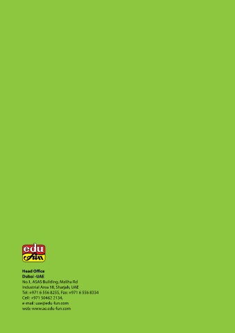 Introduction Head Office Dubai -UAE No.1, ASAS Building, Maliha Rd Industrial Area 18, Sharjah, UAE Tel: +971 6 556 8255, Fax: +971 6 556 8334 Cell: +971 50462 2134, e-mail: uae@edu-fun.com web: www.ae.edu-fun.com 172