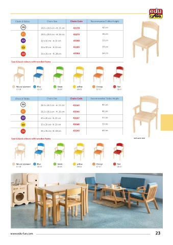 Chairs & Tables Chairs Size Chairs Code Recommended Tables Height