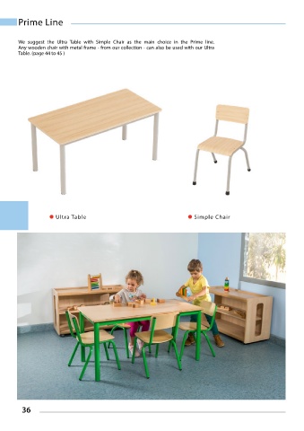 Prime Line We suggest the Ultra Table with Simple Chair as the main choice in the Prime line. Any wooden chair with metal frame - from our collection - can also be used with our Ultra Table. (page 44 to 45 ) Ultra Table Simple Chair 36