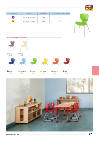 Chairs & Tables Chairs Size Chairs Code Recommended Tables Height