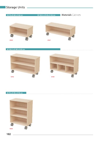 Storage Units W 70 x D 40 x H 42 cm W 103.5 x D 40 x H 42 cm Materials Cabinets 45440 45441 W 103.5 x D 40 x H 69 cm 45446 45448 W 70 x D 40 x H 96 cm 45455 102