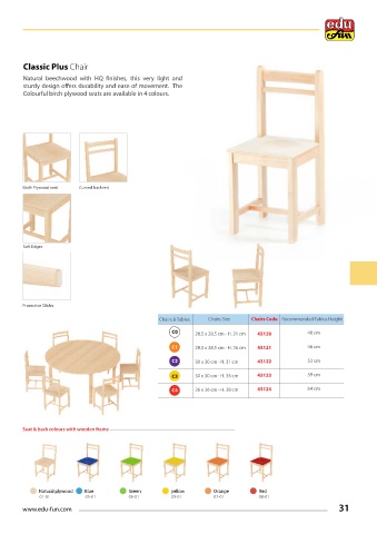 Colourful birch plywood seats are available in 4 colours.