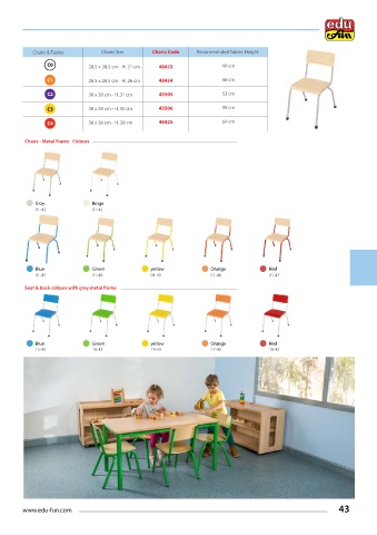 Chairs & Tables Chairs Size Chairs Code Recommended Tables Height
