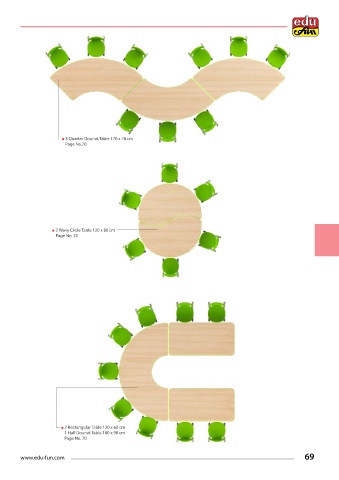 3 Quarter Dounat Table 170 x 76 cm Page No.70 2 Wavy Circle Table 120 x 80 cm Page No. 70 2 Rectangular Table 120 x 60 cm 1 Half Dounat Table 180 x 90 cm Page No. 70 www.edu-fun.com 69