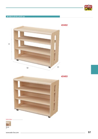 W 103.5 x D 45 x H 87 cm 45492 H W D 45493 Units Colour Wood 01 www.edu-fun.com 97