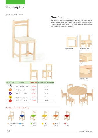 Chairs & Tables Seats Size Chairs Code Recommended Tables Height