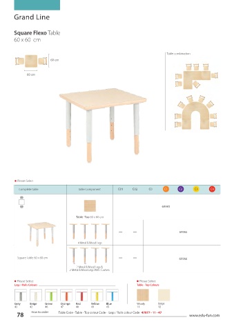 78 How to order Table Code - Table - Top colour Code - Legs / Rails colour Code 47077 - 11 - 47 www.edu-fun.com