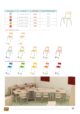 Chairs & Tables Chairs Size Chairs Code Recommended Tables Height
