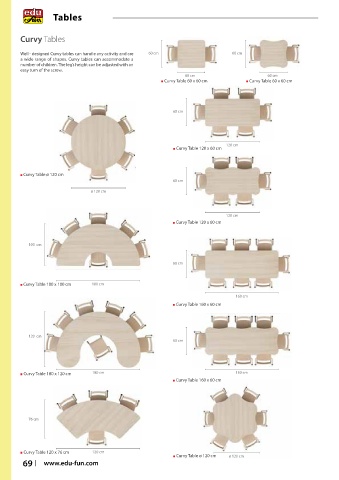 Well - designed Curvy tables can handle any activity and are 60 cm 60 cm