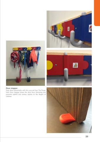 Door stopper Stop doors temporarily with this cute red foot. The Finger Alert Door Stopper keeps the door from slamming and prevents painful and serious injuries to the fingers of children. 25