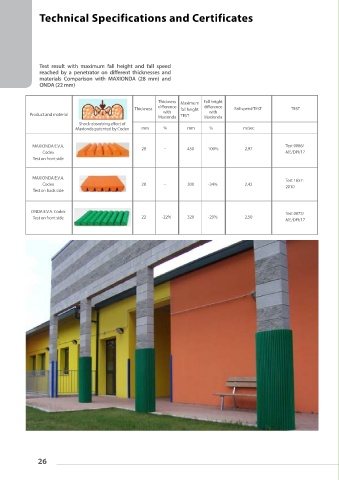 Test result with maximum fall height and fall speed