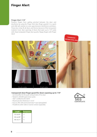 transparent door finger guard for doors opening up to 110 o