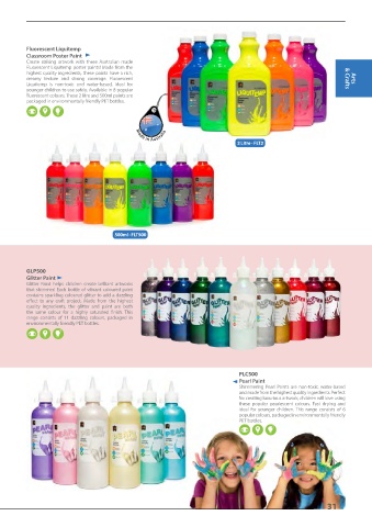 fluorescent colours. These 2 litre and 500ml paints are
