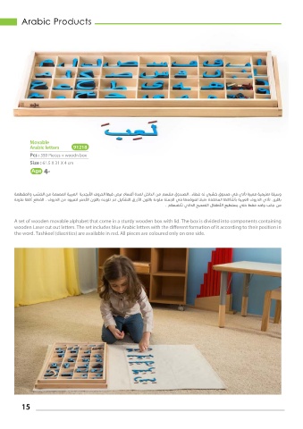 the word. Tashkeel (diacritics) are available in red. All pieces are coloured only on one side.