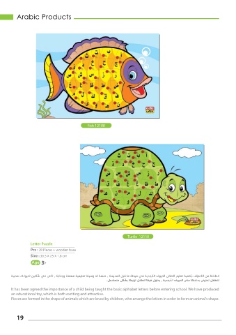 Pieces are formed in the shape of animals which are loved by children, who arrange the letters in order to form an animal‘s shape.