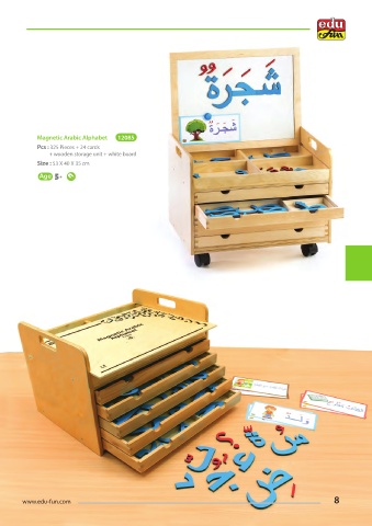 Magnetic Arabic Alphabet 12085 Pcs : 325 Pieces + 24 cards + wooden storage unit + white board Size : 53 X 40 X 35 cm 5 www.edu-fun.com 8