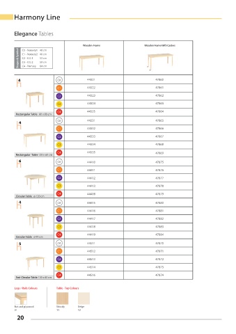 Legs / Rails Colours Table - Top Colours