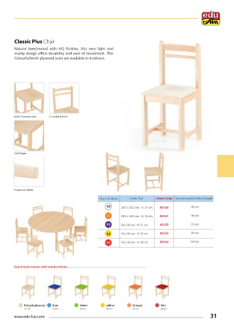 Colourful birch plywood seats are available in 4 colours.