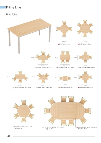 2 Trapezoidal Table 120 x 52 cm 2 Semi-Circle Table 120 x 60 cm 2 Rectangular Table 120 x 60 cm