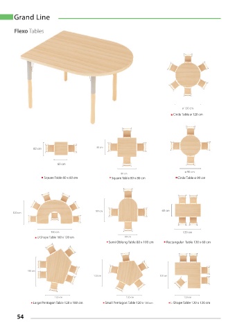 Large Pentagon Table 120 x 180 cm Small Pentagon Table 120 x 120 cm L-Shape Table 120 x 120 cm