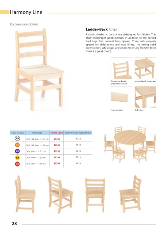 Chairs & Tables Chairs Size Chairs Code Recommended Tables Height