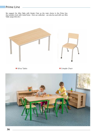 Prime Line We suggest the Ultra Table with Simple Chair as the main choice in the Prime line. Any wooden chair with metal frame - from our collection - can also be used with our Ultra Table. (page 44 to 45 ) Ultra Table Simple Chair 36