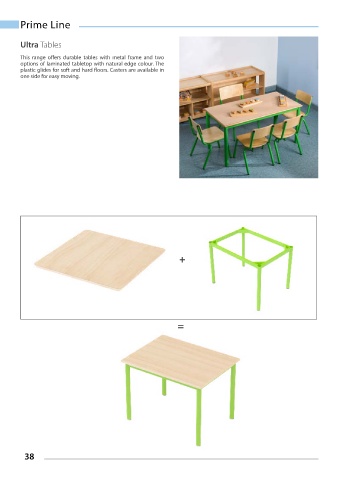 Prime Line Ultra Tables This range offers durable tables with metal frame and two options of laminated tabletop with natural edge colour. The plastic glides for soft and hard floors. Casters are available in one side for easy moving. + = 38
