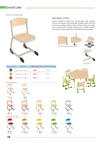 Chairs & Tables Chairs Size Chairs Code Recommended Tables Height