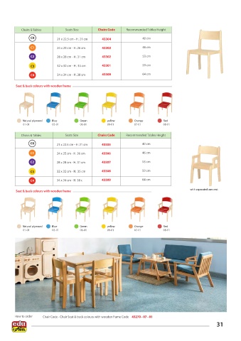 Chairs & Tables Seats Size Chairs Code Recommended Tables Height