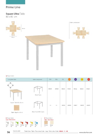 56 How to order Table Code - Table - Top colour Code - Legs / Rails colour Code 48024 - 11 - 48 www.edu-fun.com