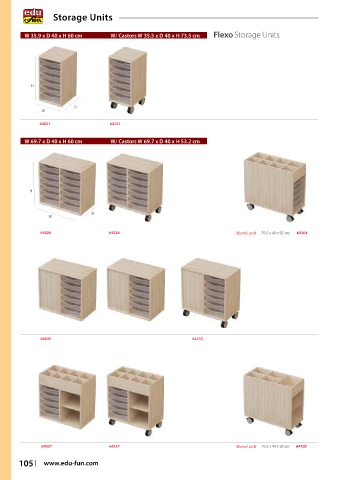 W 35.9 x D 40 x H 60 cm W/ Castors W 35.5 x D 40 x H 73.5 cm Flexo Storage Units