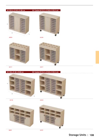 W 103.6 x D 40 x H 80 cm W/ Castors W 35.5 x D 40 x H 93.5 cm H W D 64054 64254 64117 64217 W 138 x D 40 x H 80 cm W/ Castors W 35.5 x D 40 x H 93.5 cm H W D 64118 64218 64051 64251 Storage Units 108