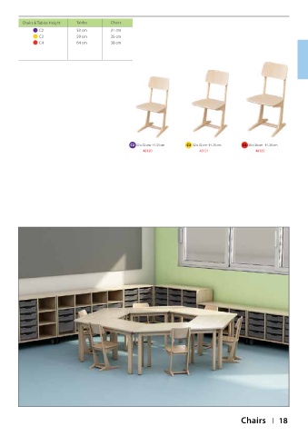 Chairs & Tables Height Tables Chairs C2 53 cm 31 cm C3 59 cm 35 cm C4 64 cm 38 cm C2 32 x 32 cm - H. 31 cm C3 32 x 32 cm - H. 35 cm C4 36 x 36 cm - H. 38 cm 48120 48121 48125 Chairs 18